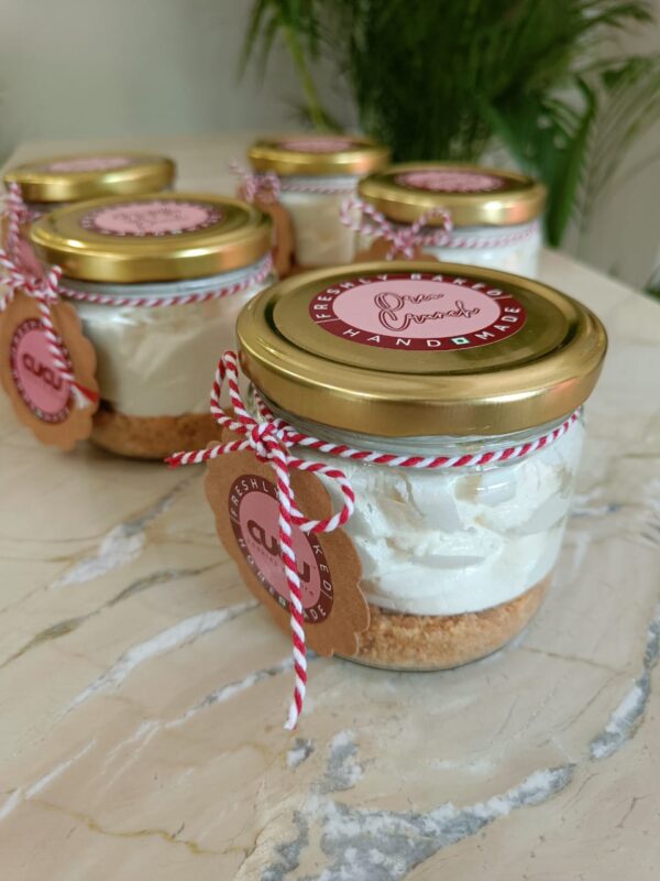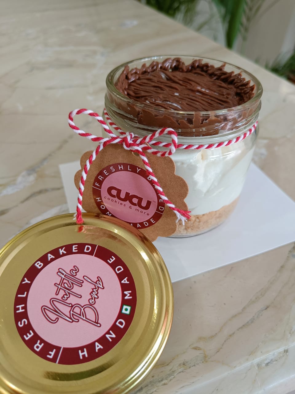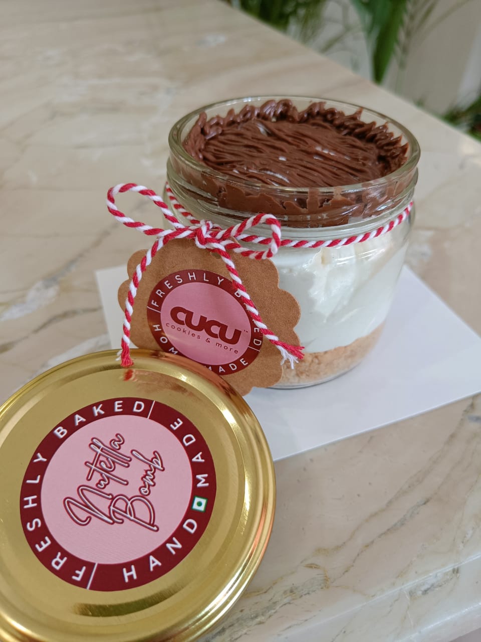 It’s made with rich cream on a crunchy biscuit base topped with Nutella spread.
